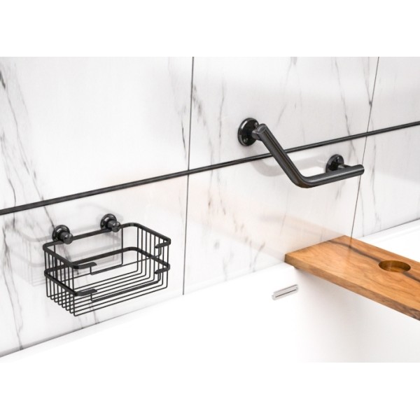 Znajdujący się w naszej ofercie czarny koszyk prysznicowy „21” wykonany jest z mosiądzu najwyższej jakości, który jest odporny na korozję. Dzięki temu koszyk charakteryzuje się dużą trwałością nawet w trudnych warunkach wilgoci, jaka panuje w łazience. Całość koszyka malowana jest na czarno termoutwardzalną farbą proszkową w kolorze czarnym RAL 9005, co nadaje mu elegancki, matowy wygląd i dodatkową odporność na uszkodzenia mechaniczne oraz chemikalia.